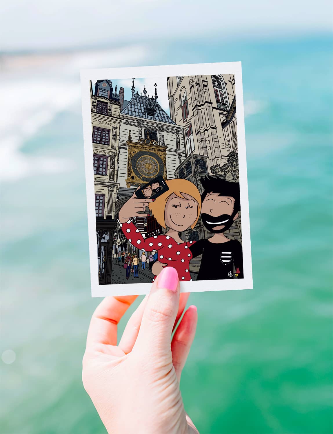 Nous avons choisi de faire appel à des jeunes artistes normands, qui se sont appliqués à nous faire voir leur ville à travers leurs propres yeux. Cette jeunesse qui se met au service de son territoire pour crier au monde que Rouen est belle, et surtout, que Rouen, on l’aime. Cette jeunesse s’inspire de la tradition pour faire éclore vos souvenirs.