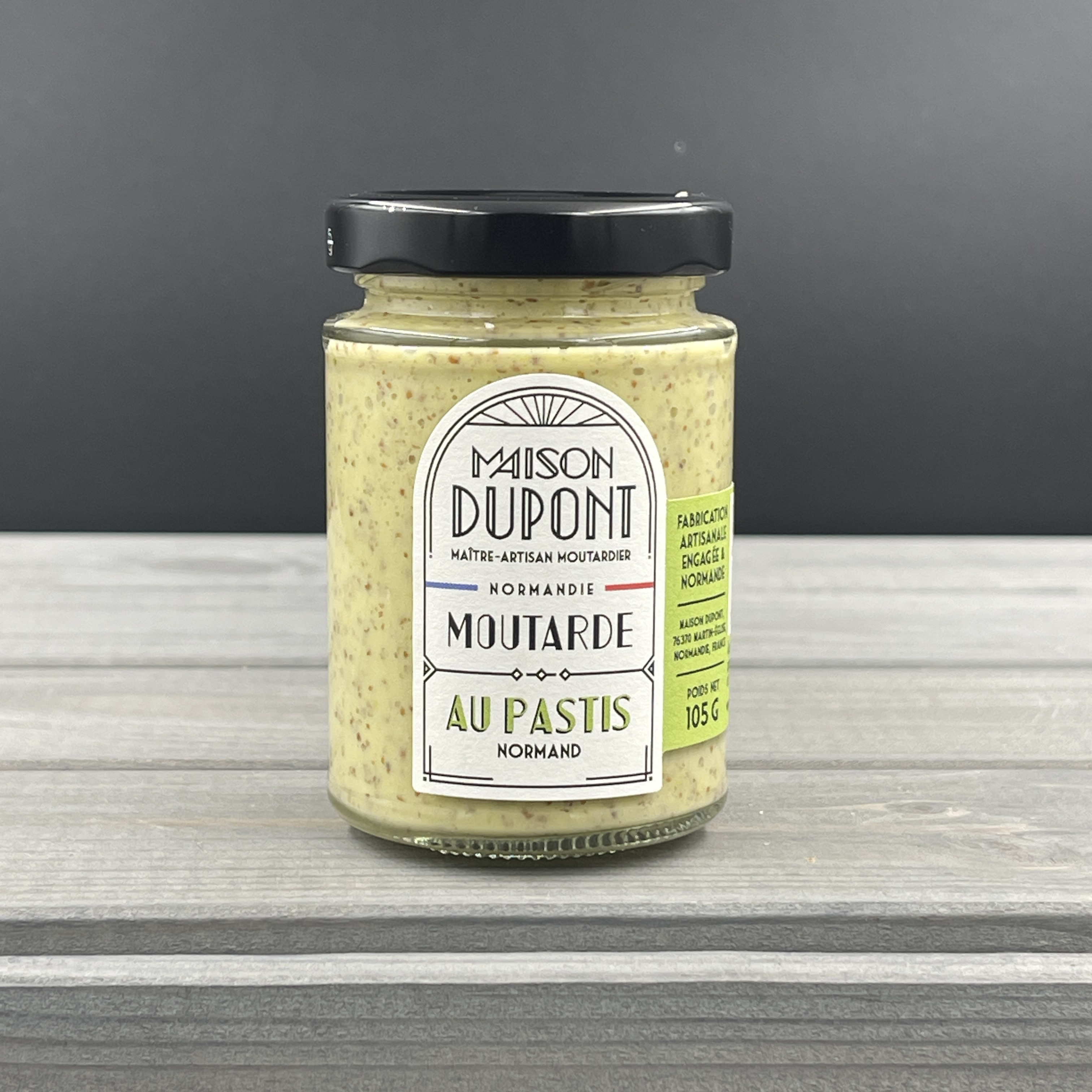 Une moutarde tout en fraîcheur végétale, réhaussée par le bouquet épicé du Pastis Normand de la Distillerie de la Seine !