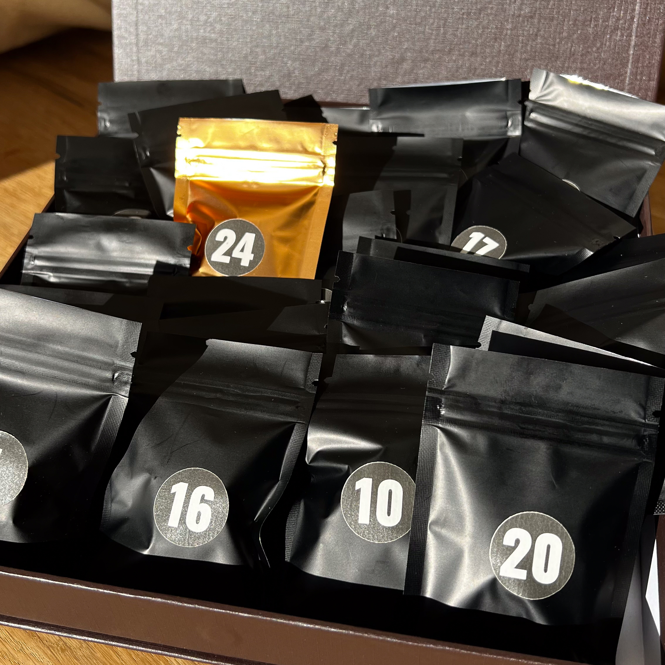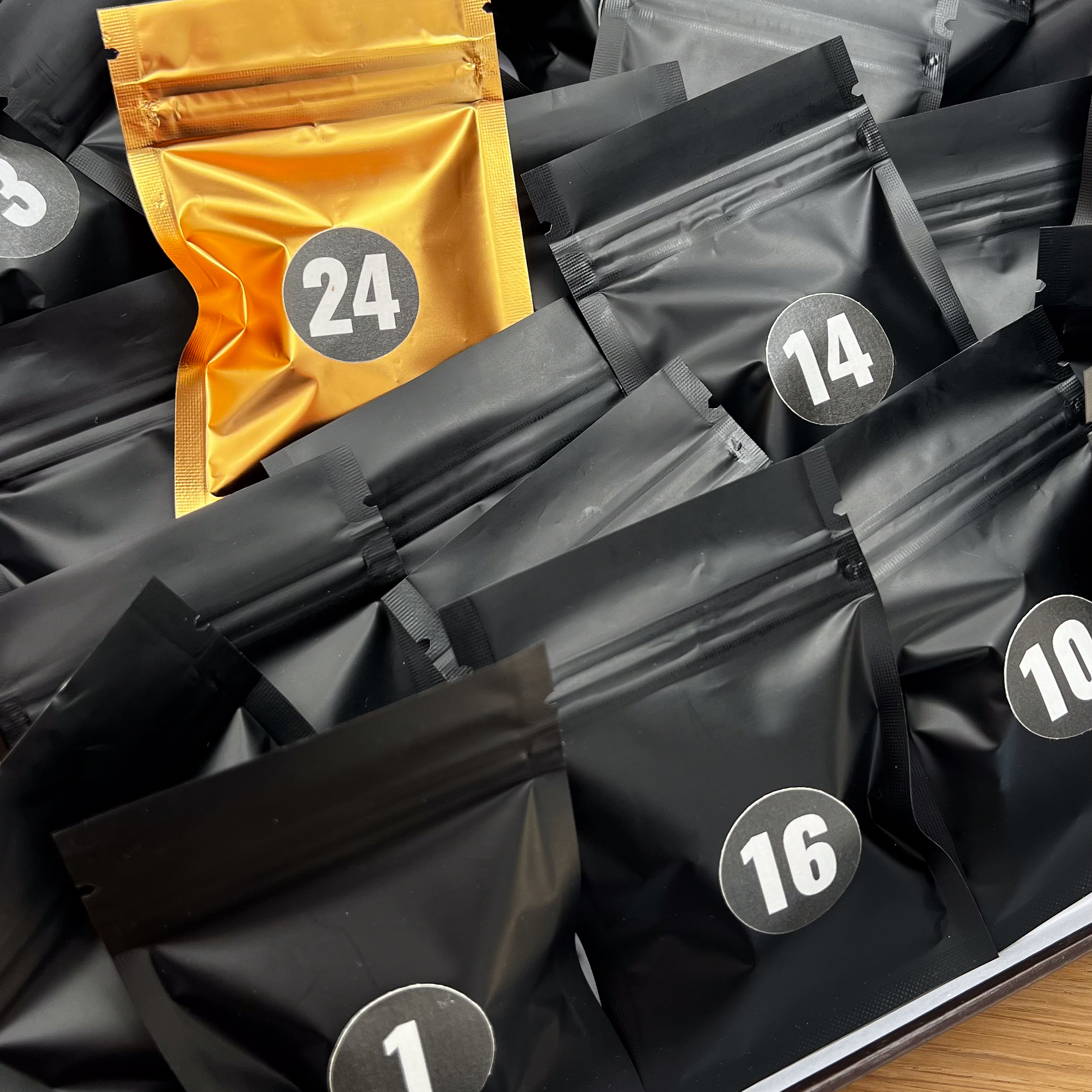 Présenté dans un magnifique coffret dont l'illustration est signée Mr Smuggler (2 modèles), ce calendrier de l'Avent regroupe 24 délices de Babzacao.